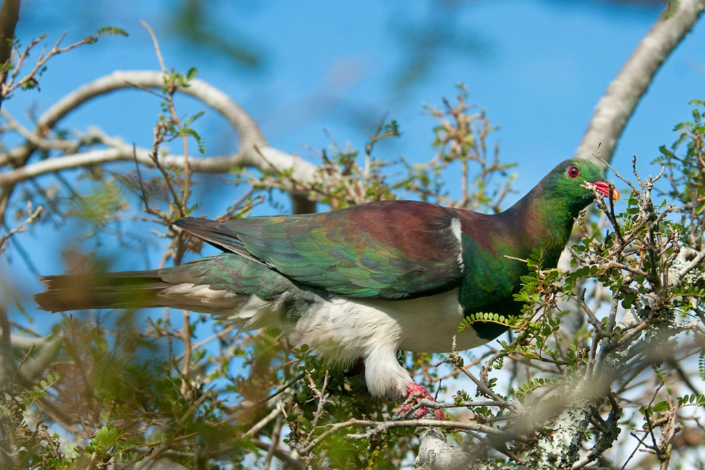 Shortly after arriving I was treated to an unexpected wildlife sighting. A brilliantly-coloured New Zealand Pigeon has landed on a tree right in front of me and was later joined by another. I watched them for about 15 minutes all the while thinking that even pigeons in New Zealand are spectacular!
