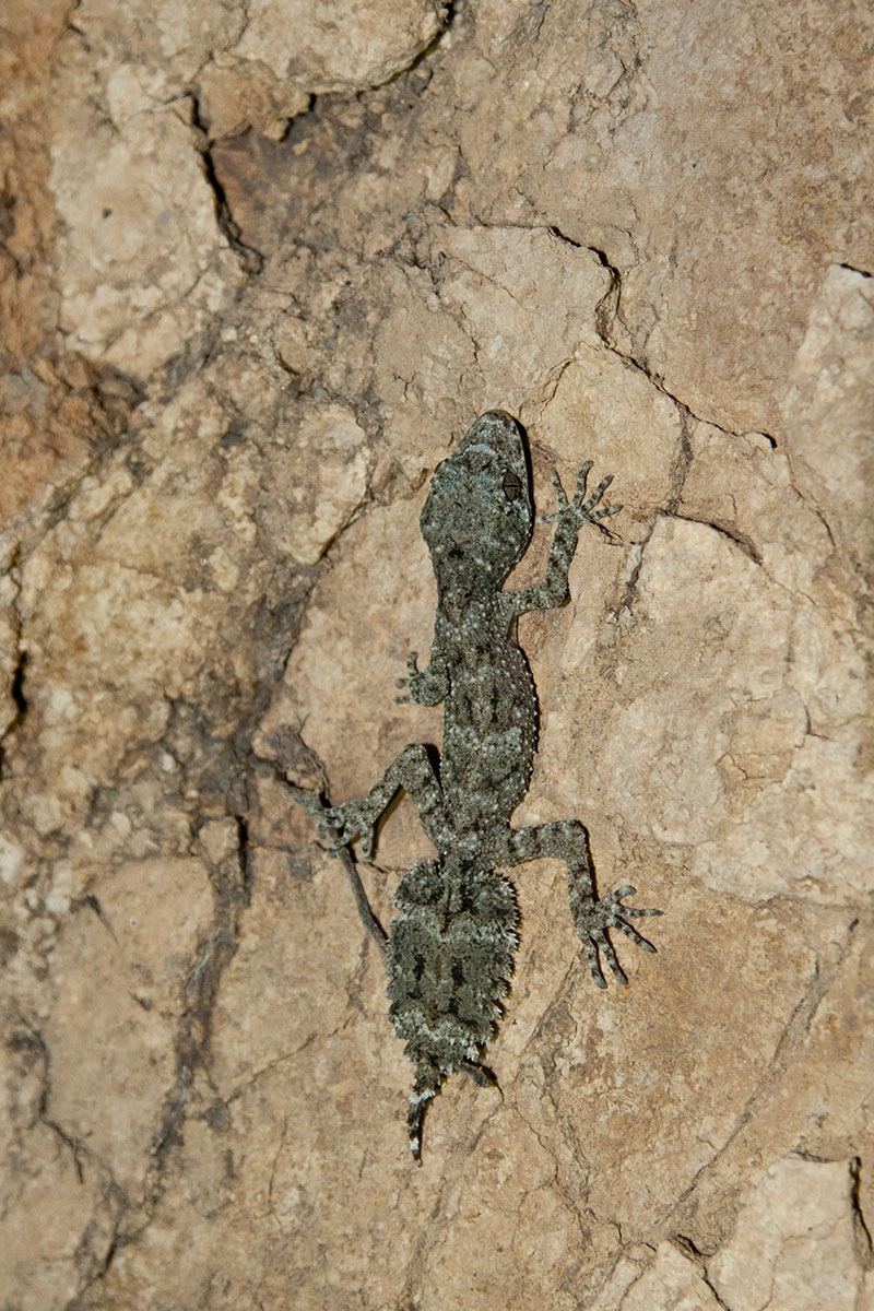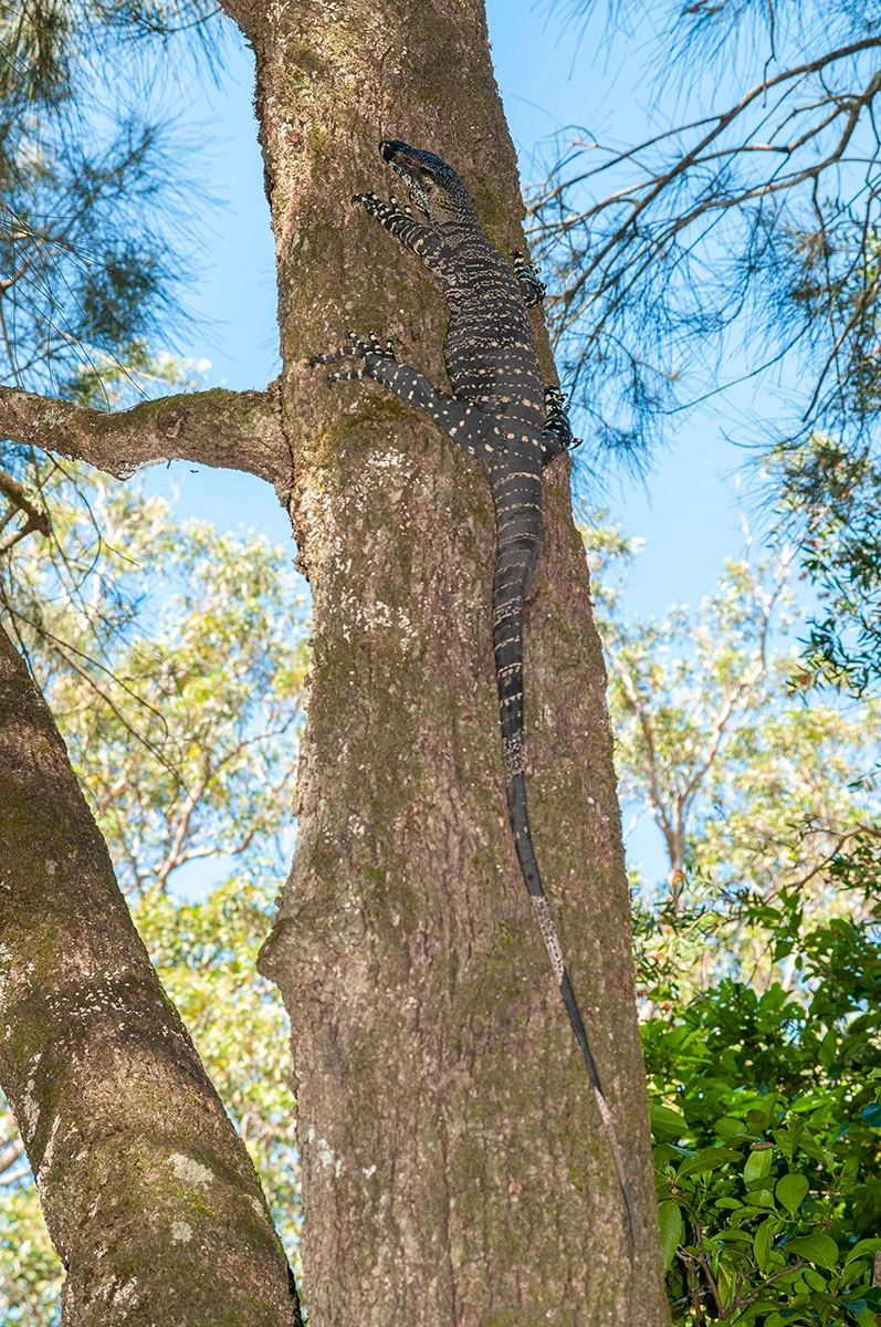 Lace monitors are also common visitors to the campsite. Another reptile can be found by walking along the stream-side track up the hill to a set of boulders. Close examination of the crevices in the rocks should turn up a few Southern Leaf-tailed geckos.